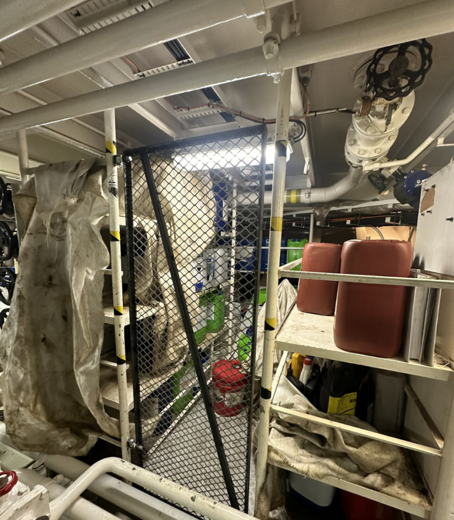 Daarnaast hebben we ook een afscherming gemaakt voor de chemische opslag. Deze afscherming biedt extra bescherming en zorgt ervoor dat de opgeslagen chemicaliën veilig en gecontroleerd blijven, wat cruciaal is voor de operationele veiligheid en het milieu.